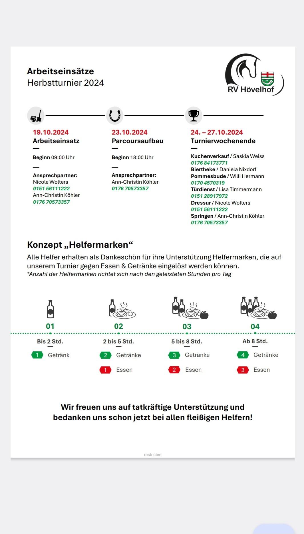❗Der Besuch der Anlage jeder Person (Reiter, Trainer,...) muss ab sofort dokumentiert werden!